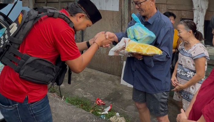 Bripka Zulham datang membawa puluhan paket bantuan berisi beras, minyak goreng, gula, teh, dan mie instan. Dengan senyum ramah, ia menyerahkan bantuan kepada para lansia, janda, dan warga yang sedang sakit.